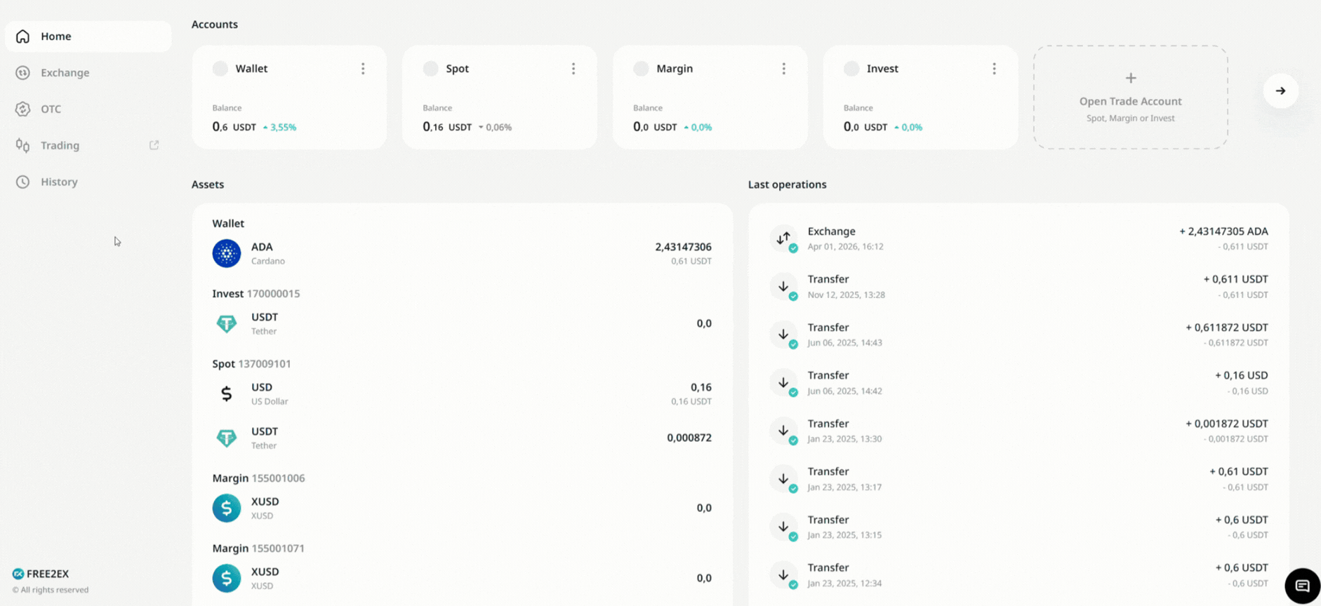 Telegram Bot - this is a fully-functional exchanger working 24/7. Chatbot link: https://t.me/FREE2EX_wallet_bot Main functionality of the bot: Registration Verification Account deposit (crypto, fiat) Exchange operations OTC Withdrawal of funds ...