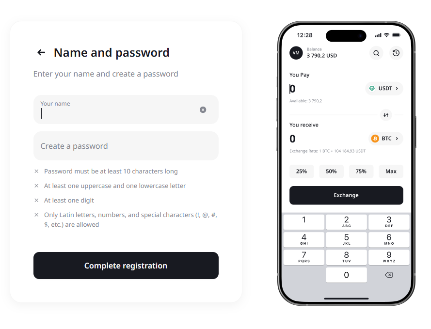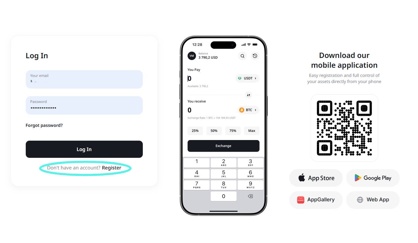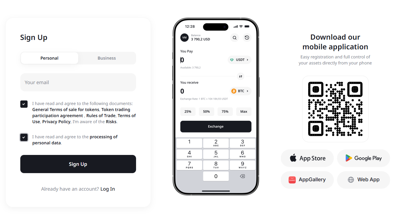 You can register an account on the FREE2EX platform in just a few steps using your email address and phone number.