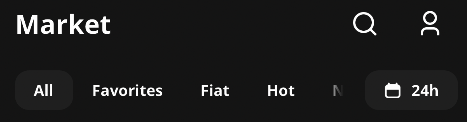 You can swiftly switch to the required asset tab: All, Favorites, Fiat, Hot, New and Most traded.