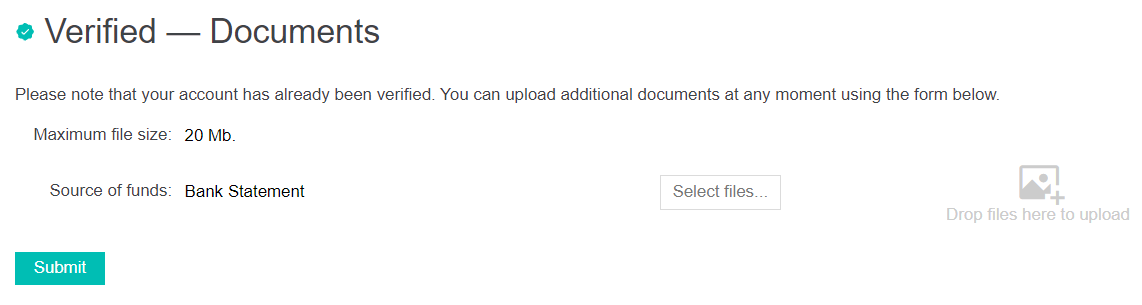 Now you need to wait for the documents to be verified, approved and the limits increased. Review period is up to 48 hours.