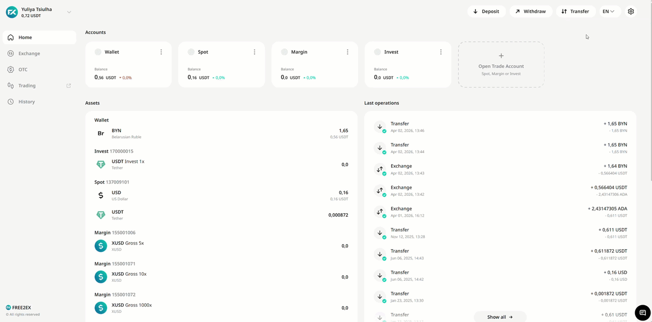Exchange The exchange is a simplified alternative to the trading platform. Here you can quickly exchange your fiat funds for major cryptocurrencies or vice versa. It's very simple, all you need to do is: 1. Select the currency you want to exchange; ...