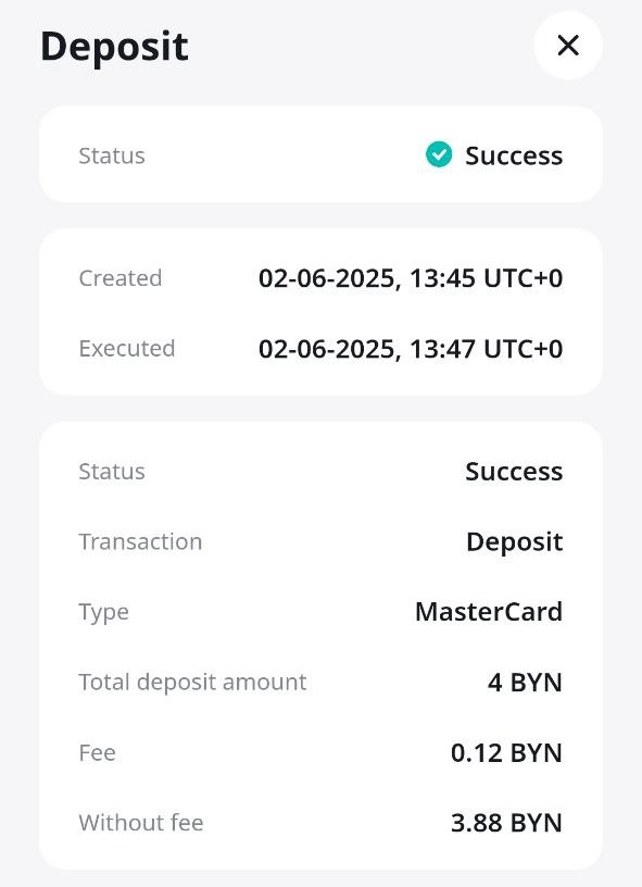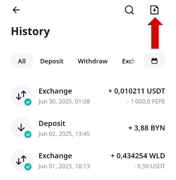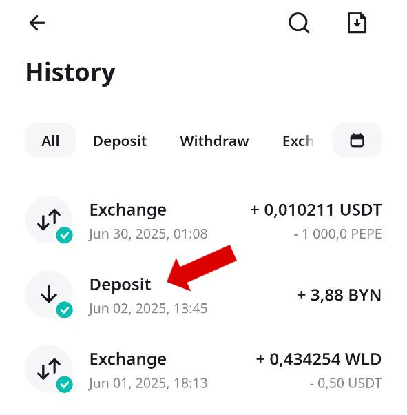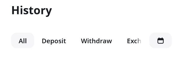 In this section, you can find information about your asset operations. You can quickly switch between tabs by operation type: All, Deposit, Withdrawal, Exchange, Transfer: