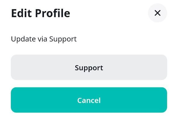 This section displays general information about your account. If you need to make changes, tap the pencil icon in the top right corner and contact support: