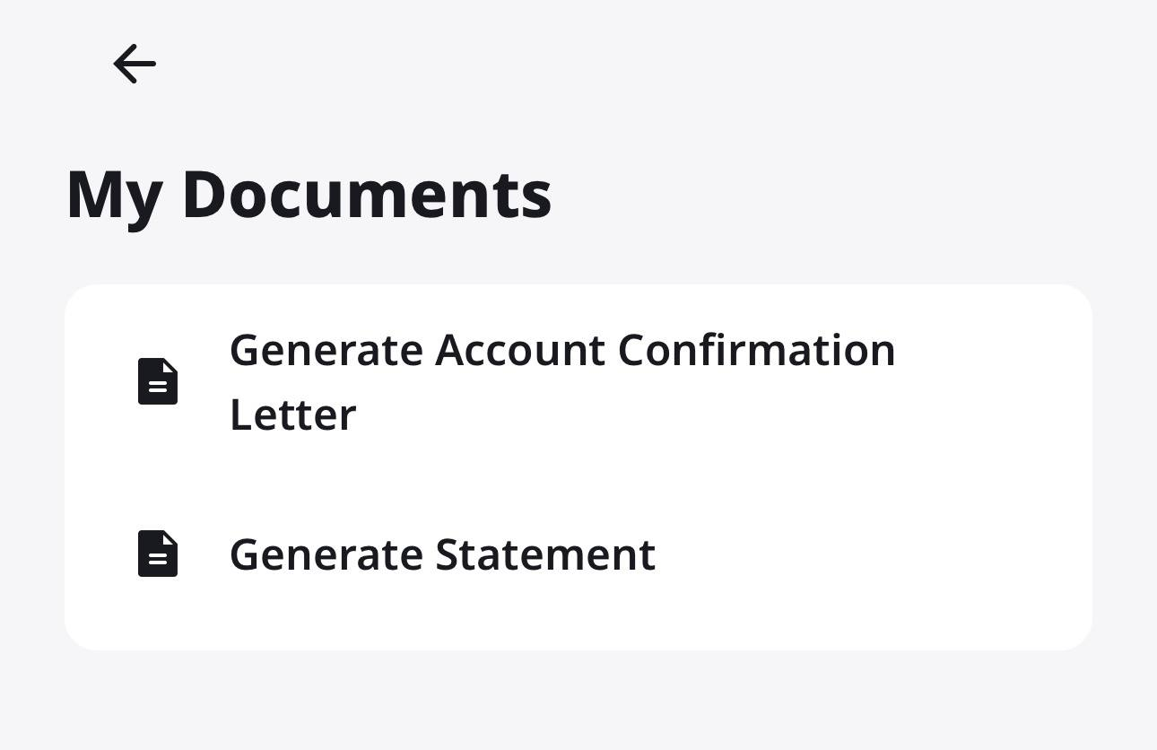 In this section, you can generate an Account Confirmation Certificate and an Account Statement: