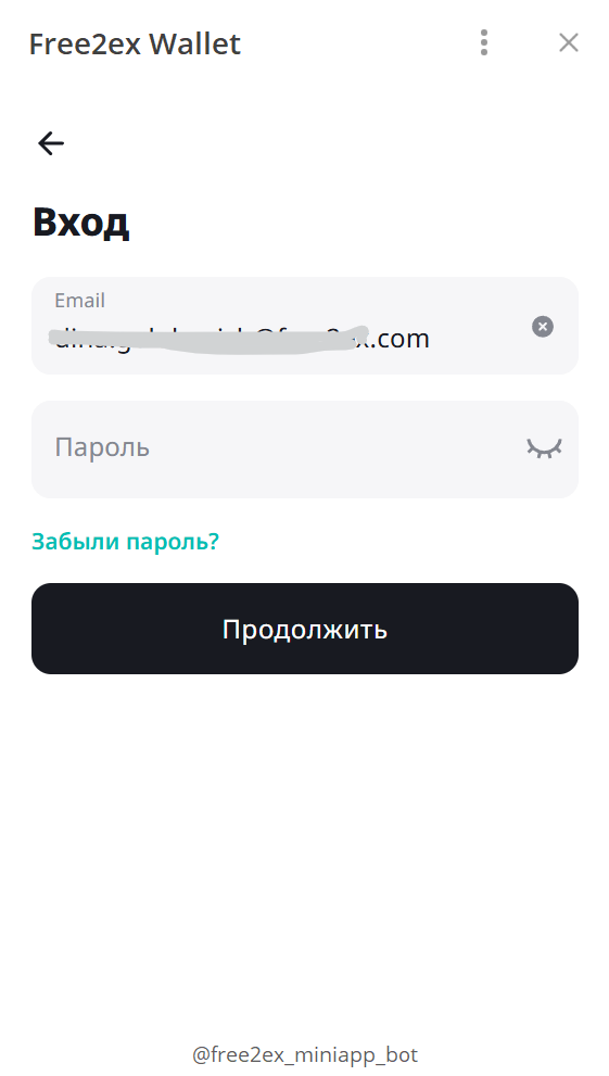 Чтобы войти в Телеграм бот FREE2EX Wallet, введите ваш email и пароль к личному кабинету и нажмите «Продолжить»: В следующем окне введите код 2FA (из приложения Google Authenticator): После успешного ввода кода вы будете автоматически перенаправлены ...
