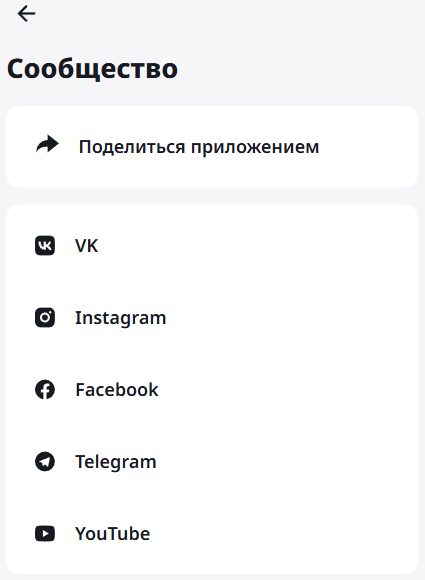 Здесь вы можете поделиться ссылкой на приложение со своими друзьями и коллегами и посетить наши соцсети: