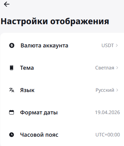В этом разделе можно выбрать валюту аккаунта, тему и язык. Изменение формата даты и часового пояса пока недоступно: