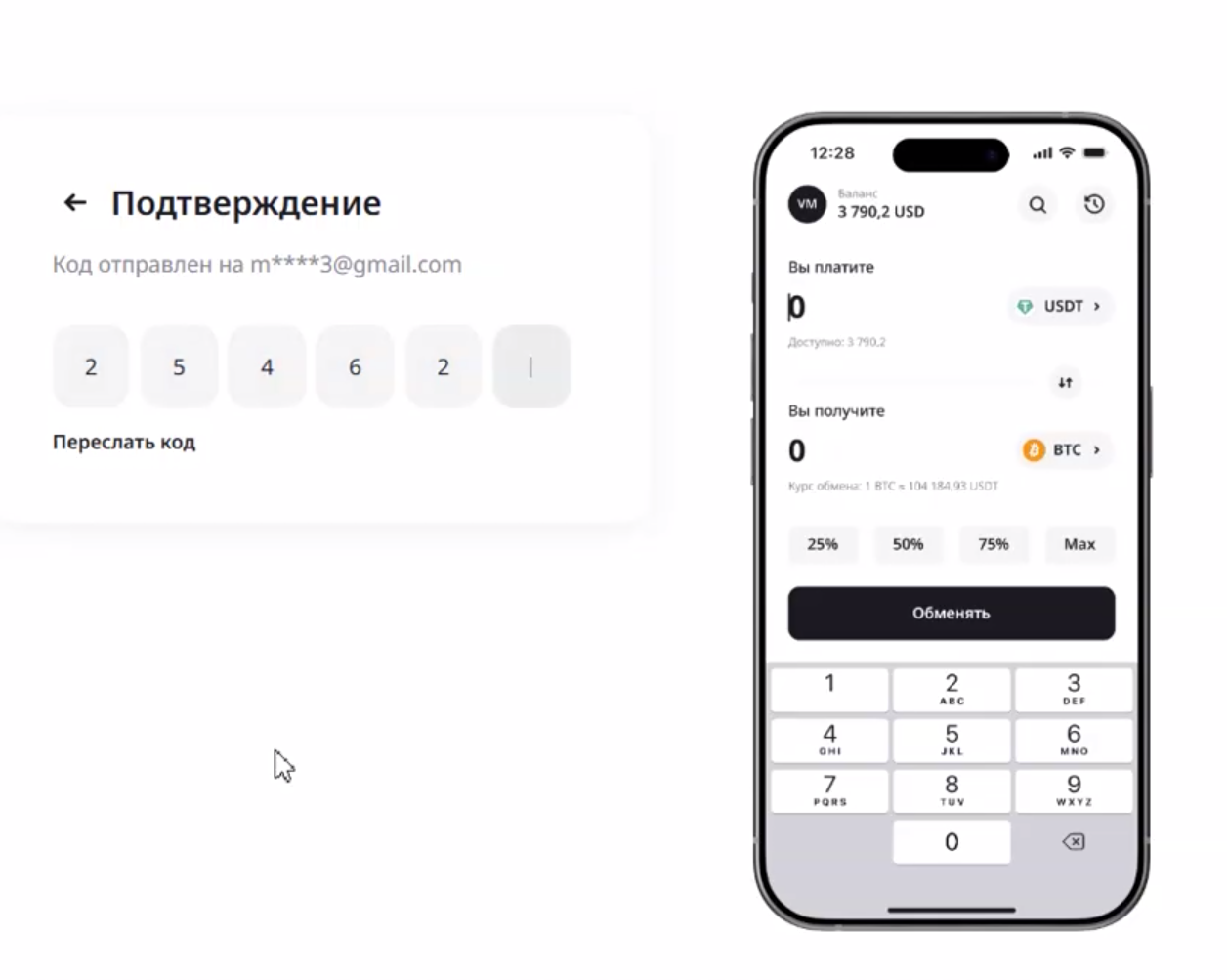 6-значный код будет отправлен на указанную вами почту. Откройте почту и подтвердите ваш email, скопировав код и вставив его в поля для цифр.