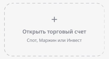 В личном кабинете нажать на кнопку Открыть торговый счет - Спот