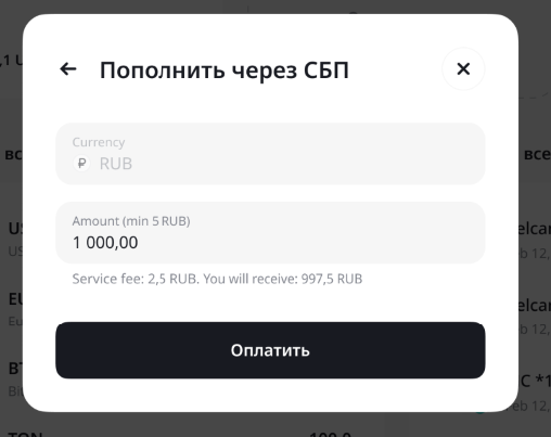 Для клиентов, использующих SberPay, возможно пополнение в RUB. Важные моменты: Пополнение доступно только в RUB Номер телефона, зарегистрированный в ПАО Сбербанк, должен совпадать с указанным на FREE2EX На стороне ПАО Сбербанк установлены лимиты на ...