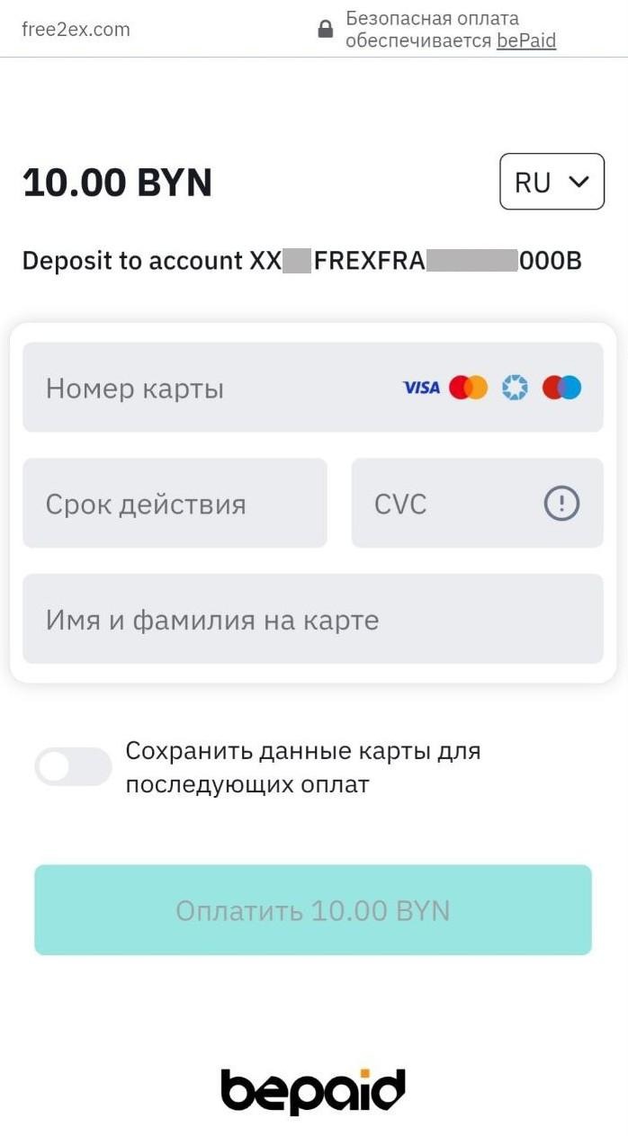 После этого откроется страница BePaid, где нужно ввести данные вашей карты: