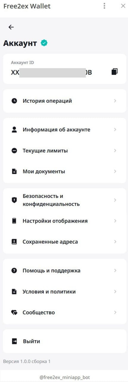 В самом верху указан ваш Аккаунт ID, который можно скопировать, нажав на иконку копирования. Ниже находится панель главного меню: