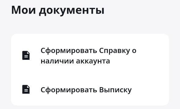 В этом разделе можно самостоятельно сформировать Справку о наличии аккаунта и Выписку по счету: