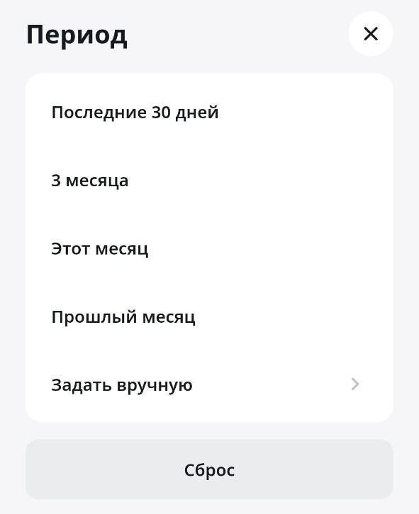 Вы также можете выбрать период, за который будут отображаться операции: